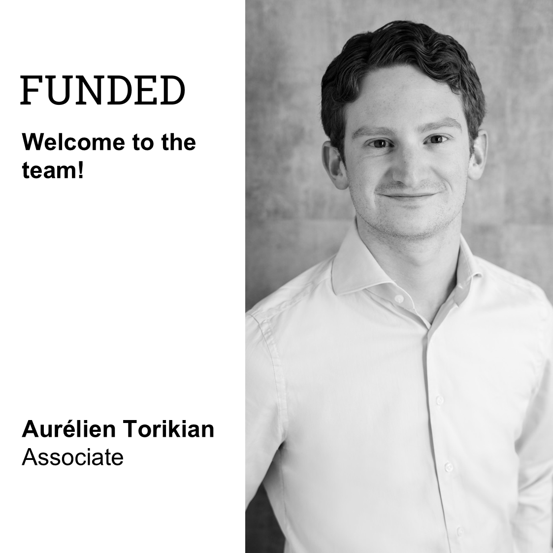 Das FUNDED-Team wächst weiter - und wir freuen uns, Aurélien Torikian an Bord begrüßen zu dürfen! Aurélien hat einen Bachelor-Abschluss der Ludwig-Maximilians-Universität München und sammelte während eines Auslandssemesters an der Paris School of Business internationale Erfahrungen. Er steigt als Associate bei FUNDED ein.